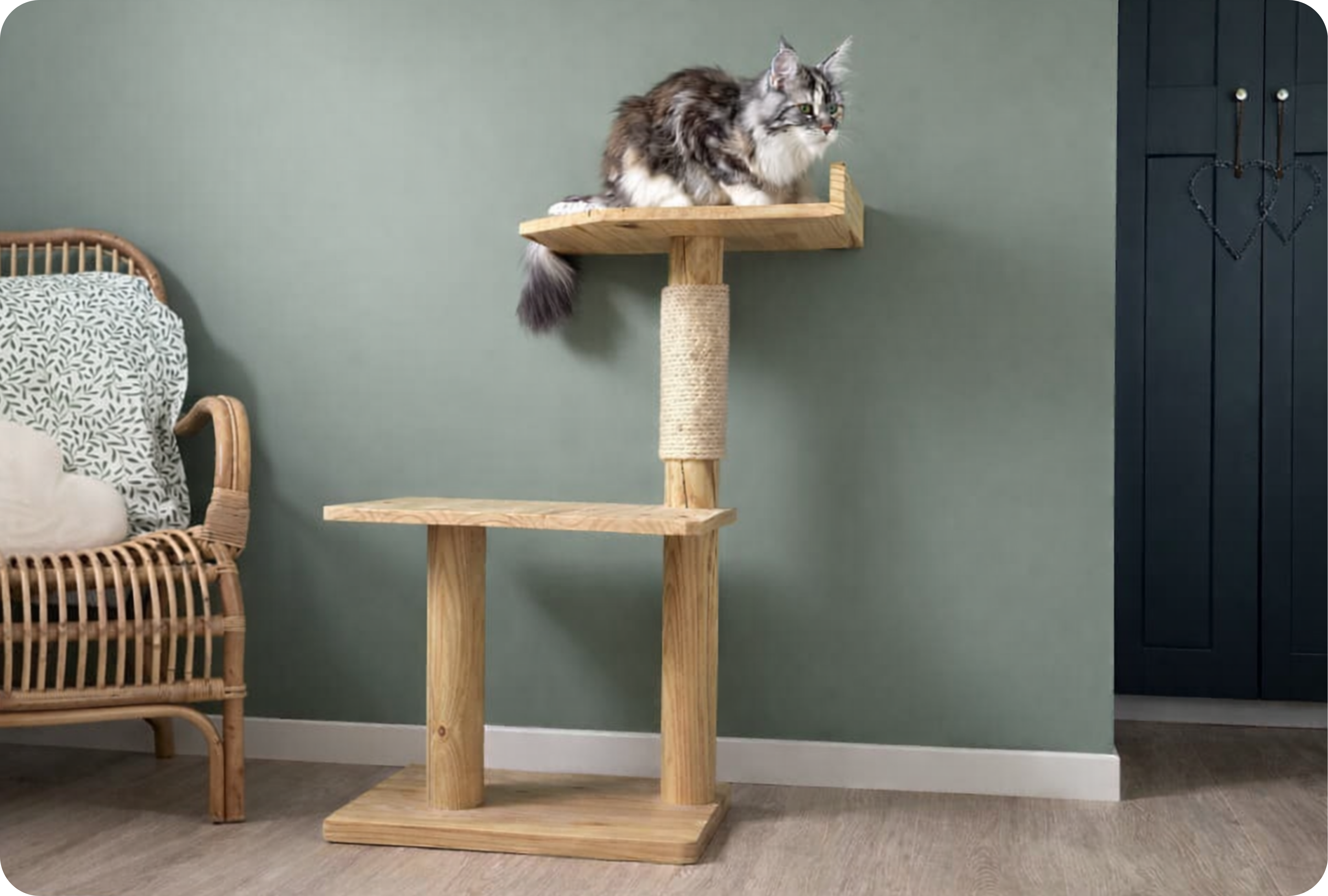 Arbre à chat de qualité. Simple, beau, stable avec un plateau large pour le confort du chat. Je recommande !