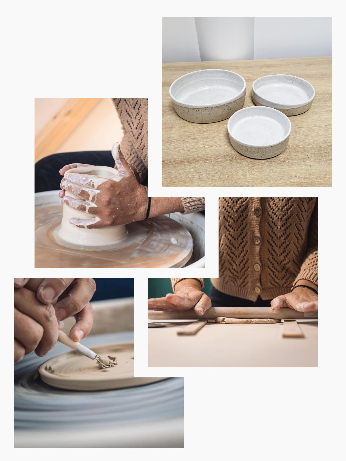 Toutes les pièces ont traversé les nombreuses étapes de ce processus un peu magique et souvent imprévisible qu'est la fabrication de la céramique ! Plus d’une dizaine d’étapes se succèdent et une quinzaine de jours s’écoulent pour obtenir le caractère unique de ces pièces qui vous rencontreront par la suite !